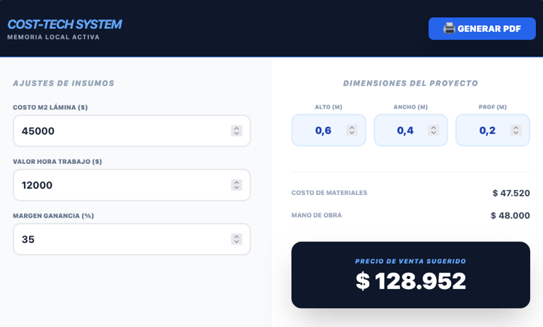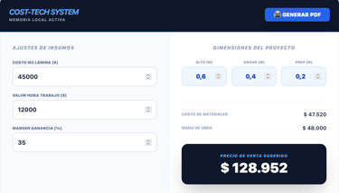Podemos integrar este sistema com o seu inventário real, conectar suas bases de dados de clientes ou adaptar as fórmulas de cálculo específicas da sua indústria. Consulte-nos para uma implementação exclusiva para o seu negócio.